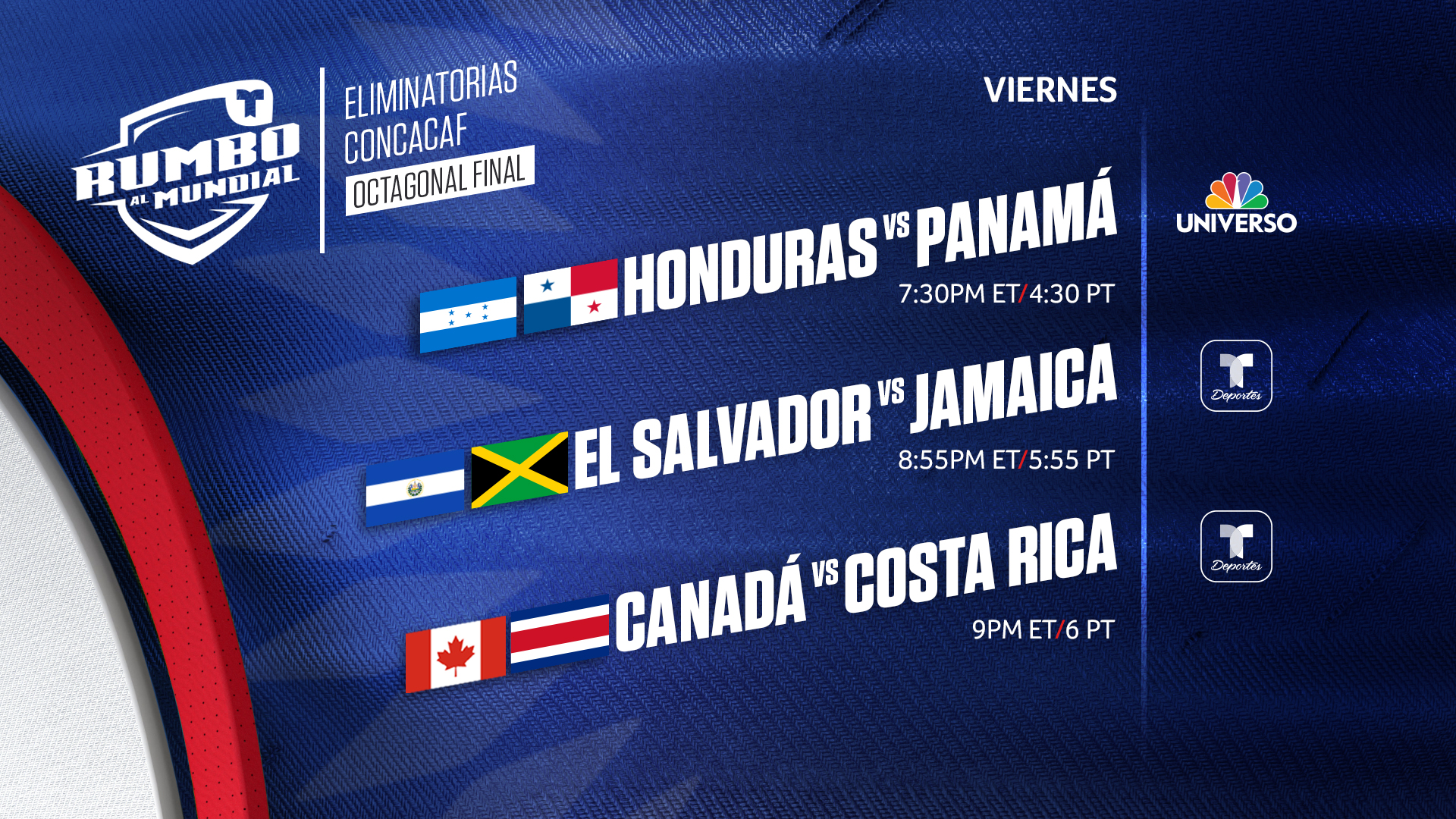 | 8:05 p.m. | Honduras vs. Panamá | UNIVERSO, Aplicación Telemundo Deportes |