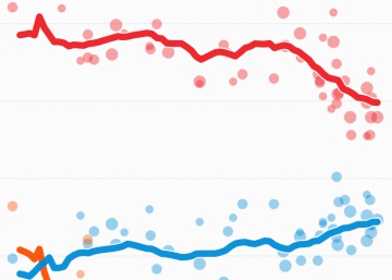 Los acontecimientos en Cataluña podrían estar impulsando el voto de la derecha. Y no sería una sorpresa porque hay precedentes: a principios de 2018, tras lo peor de la crisis catalana, la suma de PP y Ciudadanos llegó a superar a la izquierda en 12 puntos. Pero otra causa podría ser la convocatoria electoral (los bloques suelen igualarse al acercarse una votación).2. Predicción de escaños ?