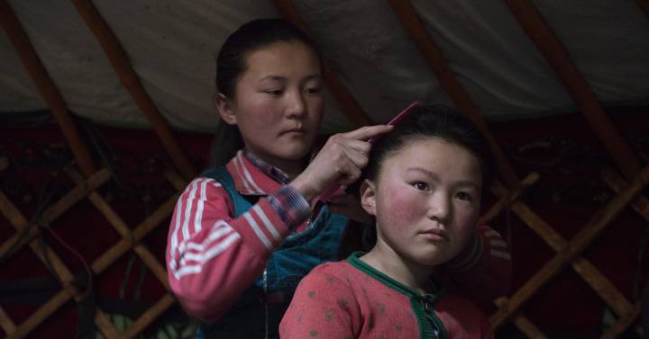 Entre té y té aprovecho para intercambiar algunas palabras con las dos adolescentes de la casa. Choidulam y Dejid, de catorce y once años, se sonrojan y hablan con una sonrisa de vergüenza. Ambas estudian en una pequeña localidad cercana, en la que residen con su abuela. Cuando las vacaciones del Año Nuevo concluyan, volverán a la ciudad. Pero la mayor asegura que ella sí quiere ser pastora.