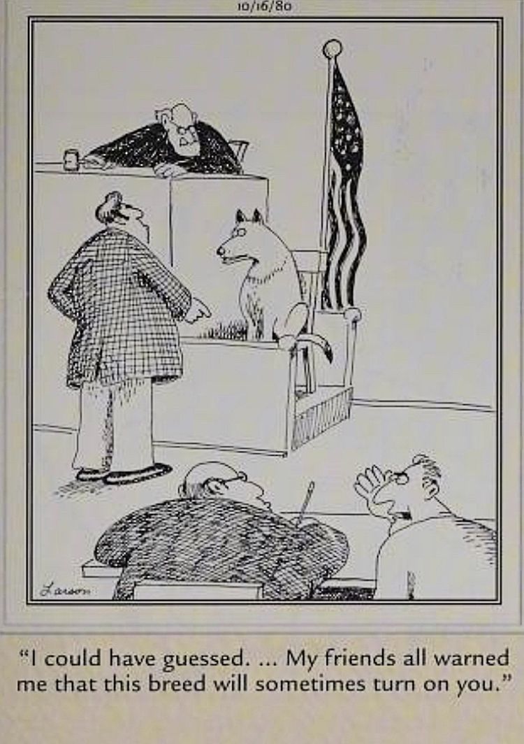 “Podría haberlo adivinado…“, dice el acusado en este Lado lejano escena del juicio, cuando su perro rompe el vínculo tradicional de lealtad humano-canino para testificar en su contra. Esto sugiere hilarantemente que el hombre enjuiciado sabía que la fiscalía tenía un testigo secreto que testificaría en su contra, y se queda perplejo al descubrir que es su perro. “Todos mis amigos me advirtieron que esta raza a veces se vuelve contra ti.“, añade el acusado, convirtiendo un problema clásico de cría de perros en un serio enigma legal.al tiempo que dejó en claro que esta persona conocía los riesgos cuando eligió este perro en particular.