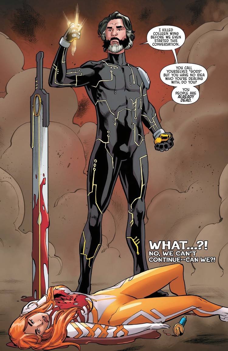 Si bien los Apeiron son ciertamente los villanos perfectos para esta nueva encarnación de Infinity Watch, en realidad podrían ser la menor de sus preocupaciones en comparación con otro villano presentado en este cómic: Avery Zala. Zala es una Portadora de Piedra (específicamente, la Piedra de la Mente) de otro universo. Sus compañeros miembros de Infinity Watch fueron consumidos por Apeiron, y él viajó a la Tierra-616 para obtener el Infinity Watch de continuidad principal para ayudarlo a restaurar su universo, por la fuerza, si es necesario. De hecho, Zala asesinó a Colleen Wing (la portadora de Mind Stone) sin que Infinity Watch lo supiera, lo que demuestra lo peligrosa que es realmente Zala.