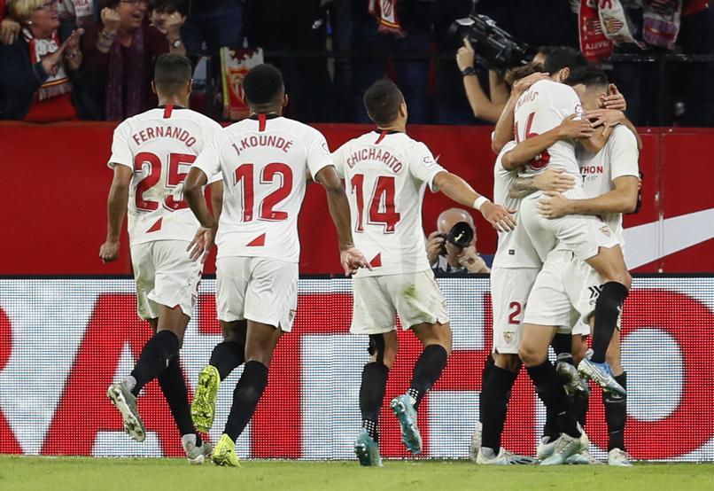 El júbilo estallaba en el Sánchez Pizjuán después de un partido atascado en la que los delanteros del Sevilla apenas habían disfrutado de ocasiones. Nolito dispuso de un par de disparos en la primera parte que encontró la respuesta de David Soria.