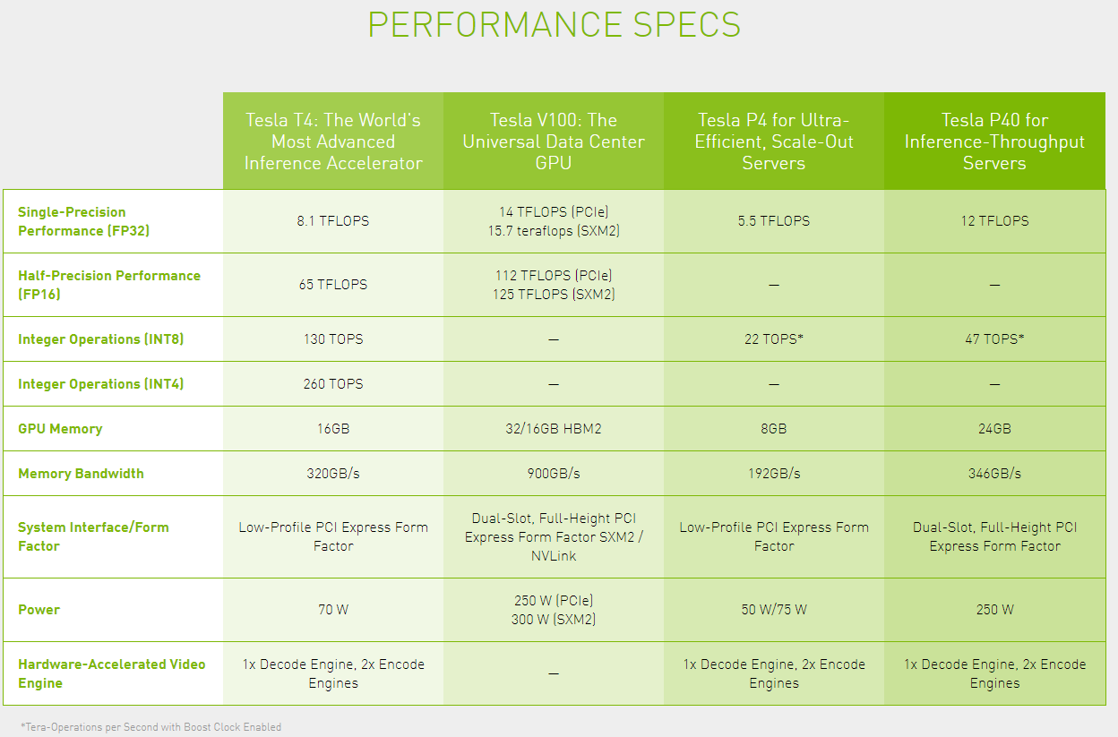 Con el lanzamiento beta de hoy de la T4, Google Cloud ahora ofrece una gran variedad de GPU Nvidia, incluidas la K80, P4, P100 y V100, todas con diferentes precios y con diferentes características de rendimiento.