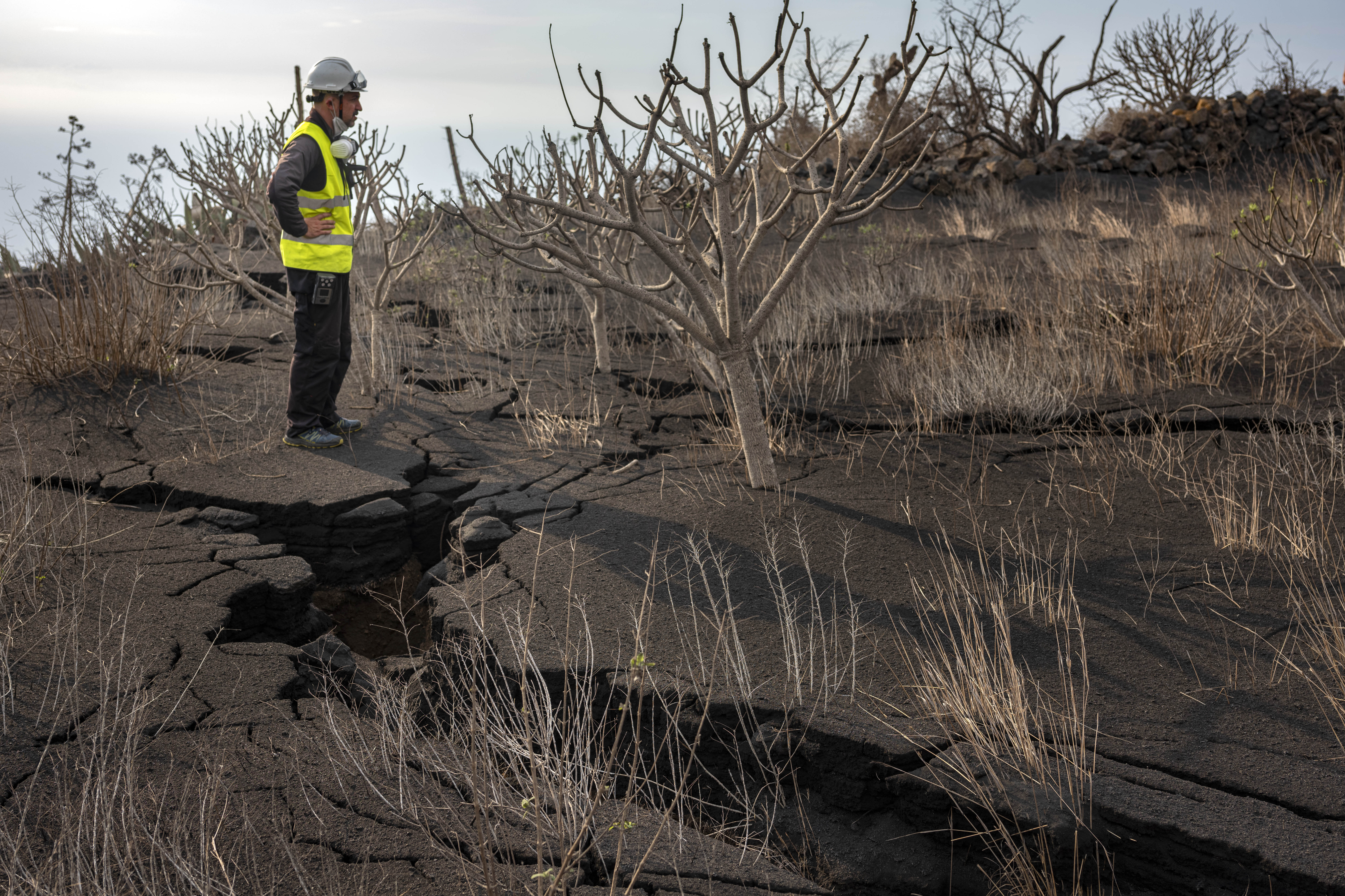 El 25 de noviembre de 2021 el vulcanólogo Pablo J. González caminaba por un paisaje asombroso. Estaba cerca de una nueva boca del volcán de Cumbre Vieja que se había abierto a la puerta de una casa ya evacuada y cubierta bajo una montaña de ceniza negra. Aquella escena fue una de las imágenes más sobrecogedoras de la erupción. Poco después, González contempló otra no menos desoladora al entrar en el cementerio de La Manchas.