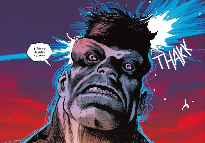 En Escuadrón Suicida: Equipo de ensueño #4 de Nicole Maines, Eddy Barrows y Eber Ferreira, Dreamer intenta escapar de las garras del Escuadrón Suicida. Sin embargo, ella ya formó un vínculo estrecho con Bizarro, el opuesto de Superman de Bizarro-World, durante su tiempo en el equipo. Entonces, cuando él rompe sus cadenas y la libera, Clock King intenta matarlo con la debilidad más mortal de Bizarro: una bala de kryptonita azul. La respuesta de Bizarro a esta jugada es absolutamente perfecta, tal y como proclama ¡Trampa con kriptonita! ¡Sin kriptonita!
