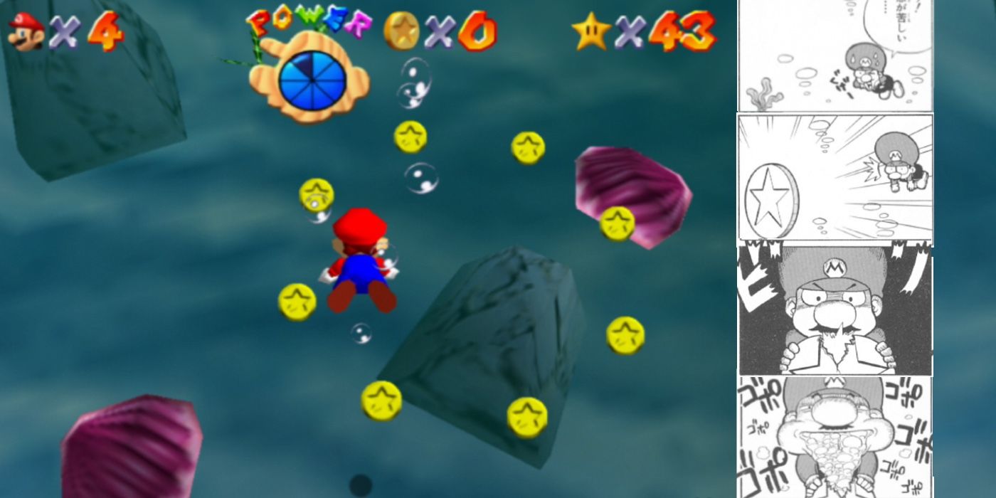 de Nintendo mario tiene el hábito de recolectar las monedas que encuentra durante sus aventuras, y las que atrapa mientras está bajo el agua ayudan a mantener su suministro de oxígeno al máximo en todo momento. Y en una década de antigüedad súper mario 64 manga, ¡se revela el secreto de cómo estas monedas de oro mantienen a Mario nadando mucho más allá de su límite natural!