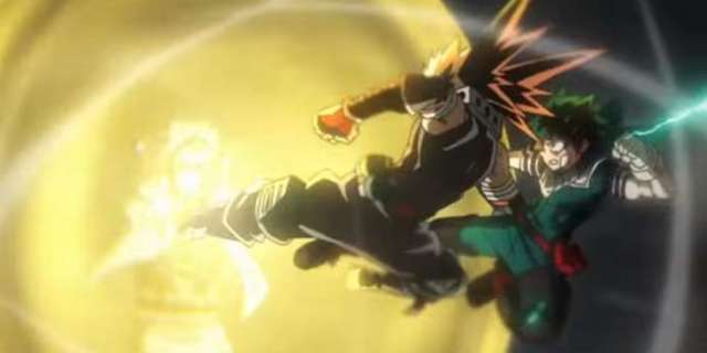 En los minutos finales de la película, Midoriya y Bakugo se encuentran en un callejón sin salida, incapaz de encontrar una manera de derrotar a Nine, la creación de la Liga de Villanos que posee habilidades similares a las del fundador de la organización, All For One. ¡Sin otra opción, Deku decide que la única forma en que van a ganar es transfiriendo el poder de One For All a su enemigo en Bakugo! ¡Mientras los dos jóvenes héroes albergan el poder de One For All, el Quirk compartido les da suficiente poder para derrotar al heredero aparente de All For One!