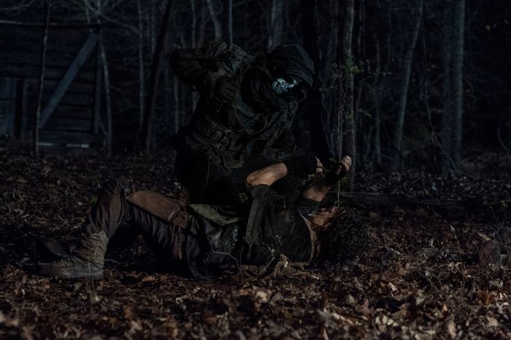 Las primeras tres imágenes son todas del episodio 3 titulado “Hunted”, y es justo decir que el episodio será muy pesado para Maggie y Negan, quienes se ven obligados a convertirse en aliados. Los dos forman un equipo poco probable, por supuesto, porque Negan mató al esposo de Maggie, Glenn, justo en frente de ella, lo que llevó a Maggie a querer venganza. Todavía es posible que Maggie pueda vengarse en el futuro, pero por ahora ella y Negan están en un estado de tregua. De hecho, una imagen los muestra literalmente formando equipo para matar a un zombi juntos (el momento no es muy reconfortante, pero es indicativo del estado de las cosas a medida que avanza la temporada 11).
