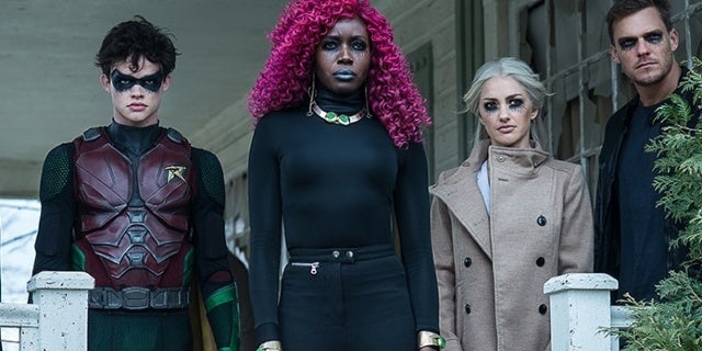 Titanes estrellas Brenton Thwaites (Dick Grayson / Robin), Teagan Croft (Rachel Roth / Raven), Anna Diop (Koriand'r / Starfire), Ryan Potter (Gar Logan / Beast Boy), Minka Kelly (Dawn Granger / Dove), Alan Ritchson (Hank Hall / Hawk), Conor Leslie (Donna Troy), Curran Walters (Jason Todd / Robin), Joshua Orpin (Conner Kent / Superboy), Iain Glen (Bruce Wayne), Chelsea Zhang (Ravager), Esai Morales (Deathstroke) , Chella Man y (Jericho).