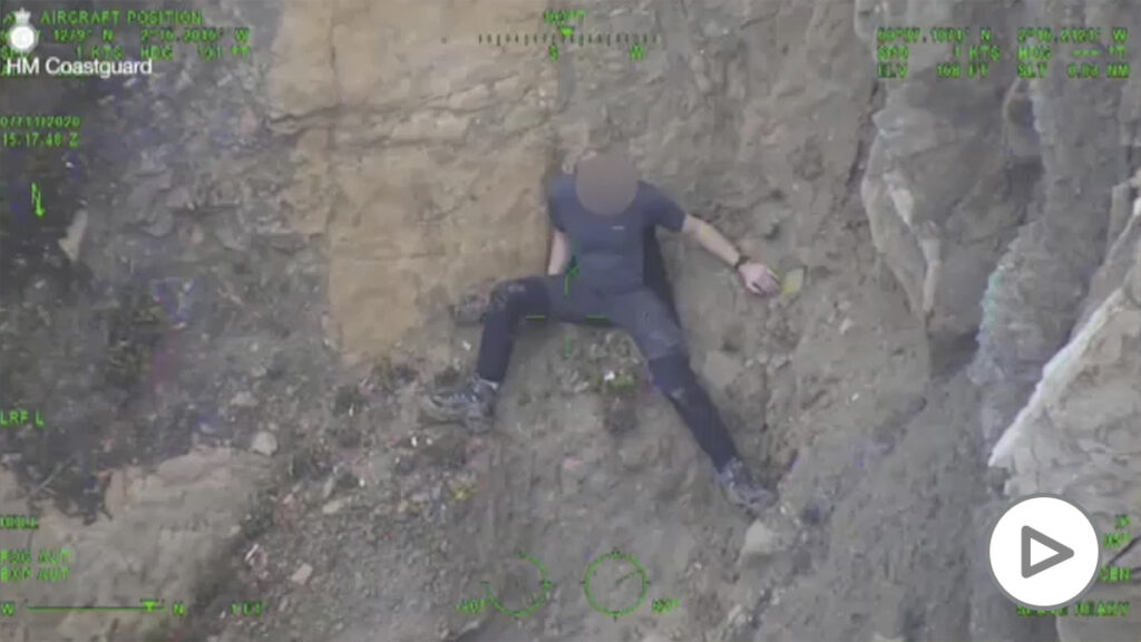 Las imágenes recogen el impresionante rescate de un escalador cuya única sujeción a las rocas son sus manos. El hombre quedó bloqueado a más de 20 metros de altura en una pendiente extremadamente resbaladiza. Se agarraba a las rocas con las manos, sin cuerdas ni elementos de sujeción. Los bomberos, con la ayuda de un helicóptero, llegaron hasta él y lograron subirlo hasta la cima.