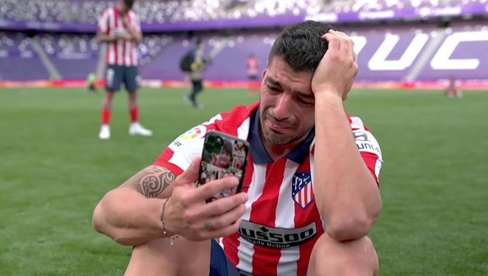 sobre el césped de Zorrilla, de un emocionadísimo Luis Suárez, llorando mientras hablaba con su familia.