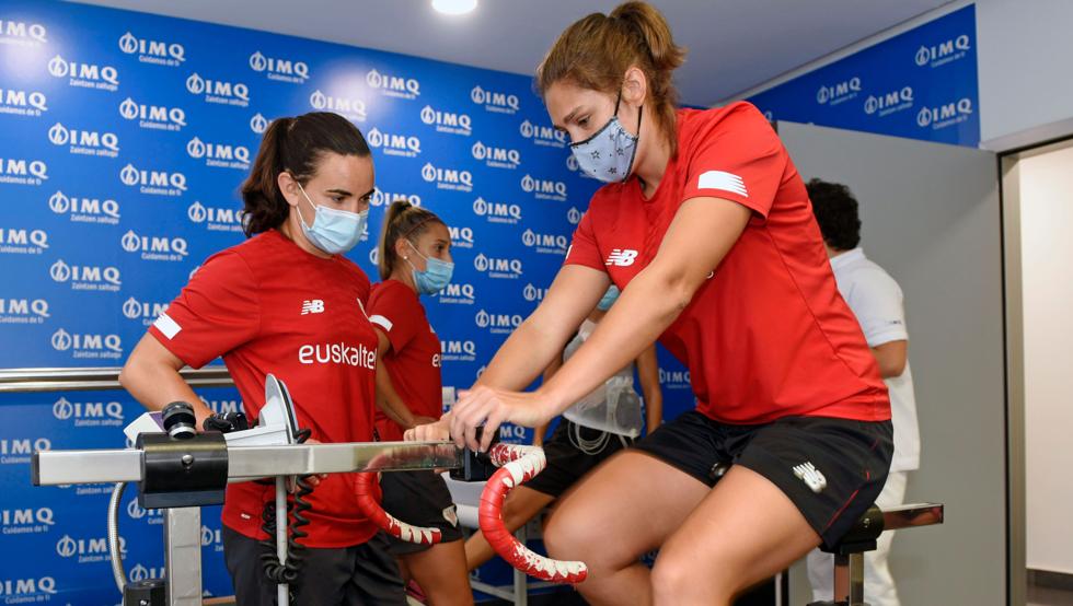 El doctor Pablo Aranda, responsable de la Unidad de Medicina Deportiva de IMQ, en coordinación con los servicios médicos del Club, que lidera el doctor Josean Lekue, ha dirigido un completo reconocimiento médico deportivo de élite a las componentes de la plantilla. “El equipo este año ha venido aún mejor. El hecho de llevar ya una semana entrenando antes de venir a los reconocimientos ha hecho que estén mejor físicamente”, ha afirmado Aranda.