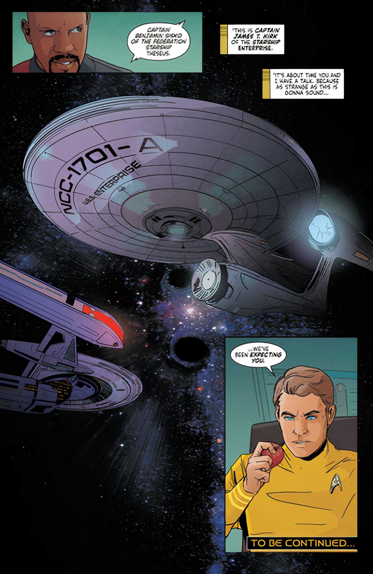 viaje a las estrellas El número 25 fue escrito por Jackson Lanzing y Collin Kelly y dibujado por Liana Kangas. Después de la destrucción del universo, el Teseo Fue arrojado al espacio fluídico. Escaparon por poco y aparentemente se encontraron de regreso en casa. Sin embargo, Data nota que las estrellas no son correctas y, de hecho, han viajado 120 años en el pasado. La tripulación apenas tiene tiempo para recuperarse antes de ser saludados por el Empresa. Sin embargo, es el kelvin Empresay el Capitán Kirk le informa a Sisko “te estábamos esperando”.