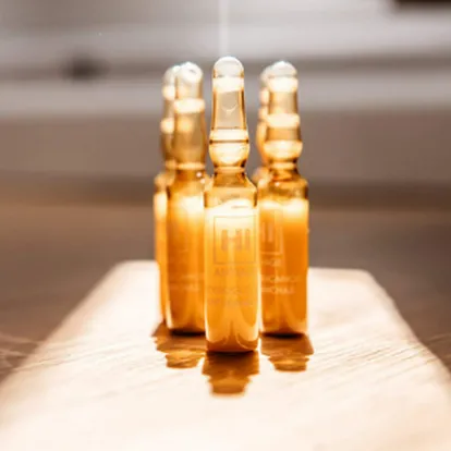 Ampollas de ácido hilurónico triple efecto flash: antiedad, firmeza e hidratación profunda. Cada estuche contiene cinco ampollas, elaboradas con un aplicador y un tapón de ampollas que asegura la higiene y una aplicación precisa. Son ideales para todo tipo de pieles: grasas, mixtas o normales.