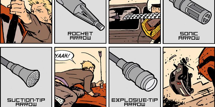 Las mejores armas de Hawkeye son sus flechas, que los fanáticos de MCU saben que vienen en una variedad aparentemente interminable. En los cómics, Hawkeye ha utilizado una serie de flechas únicas contra sus enemigos. Estos incluyen flechas explosivas, así como las que disparan redes, tienen puntas de succión que puede usar para agarrarse a las superficies, y flechas sónicas que emiten tonos de alta frecuencia debilitantes.