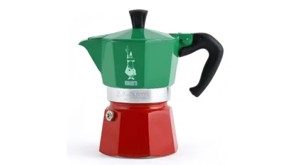 Cafetera italiana con un diseño tricolor de la bandera de Italia, una colección que rinde homenaje al sabor del café de esta tierra. Se ha fabricado en aluminio de calidad y dispone de una capacidad de tres tazas.