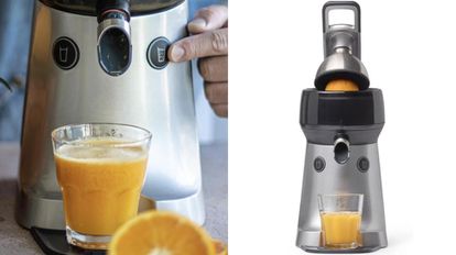 Fabricado en materiales duraderos, el cono es de acero inoxidable y sus recipientes están hechos en Tritán. Con él podrás exprimir naranjas, mandarinas, pomelos limones y hasta granadas. Su diseño es compacto, su altura no llega a los 40 centímetros y es rápido y potente: 1.450 revoluciones por minuto y 340 vatios de potencia. Además, elige el zumo con pulpa o sin ella, como más te guste. Su nivel de ruido no supera los 65 decibelios y dispone de cinco años de garantía.