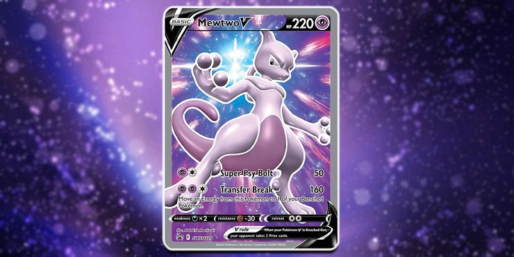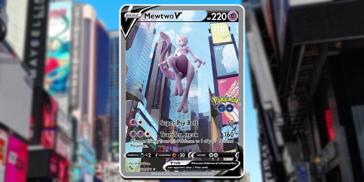 Una de las cartas más raras del Pokémon GO JCC el juego es la carta de Mewtwo V Alternate Art. La tarjeta Pokémon presenta una increíble obra de arte completa de Mewtwo levitando frente a un rascacielos de la ciudad como telón de fondo. El legendario de tipo psíquico viene con la poderosa habilidad Transfer Break, que puede infligir más de 160 de daño a un oponente con solo tres de energía.
