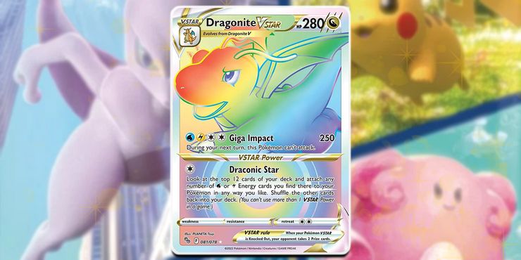 Después de hacer su primera aparición en el Pokémon Estrellas Brillantes JCC expansión en febrero, la mecánica VSTAR se ha convertido rápidamente en un éxito tanto para los coleccionistas de cartas Pokémon como para los jugadores. El tipo de carta rara presenta Pokémon populares con poderosos movimientos potenciados. Dragonite hace su debut en VSTAR en el Pokémon GO JCC y también es una de las pocas cartas que se presenta como Secret Rare.