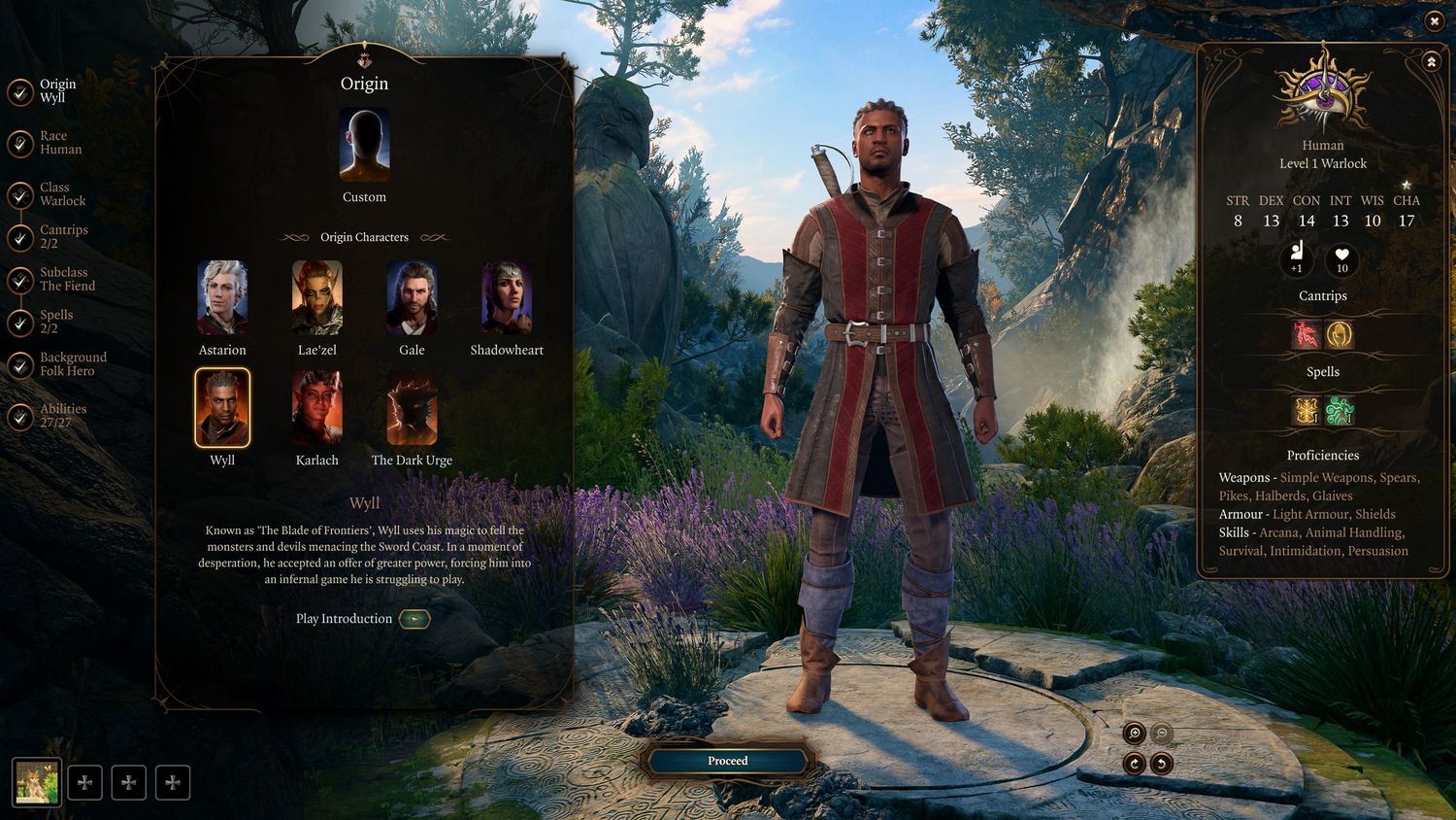 La línea de misiones personales de Wyll hace gran referencia a su papel como Brujo, por lo que cualquier cambio de clase importante puede resultar incómodo a efectos de juego de roles. Sin embargo, los brujos dependen del carisma para lanzar hechizos, una característica que comparten con los bardos, paladines y hechiceros, por lo que existen varias opciones excelentes para la multiclase. Esto no necesariamente afectaría el juego de roles siempre que Wyll tenga algunos niveles en la clase Warlock.