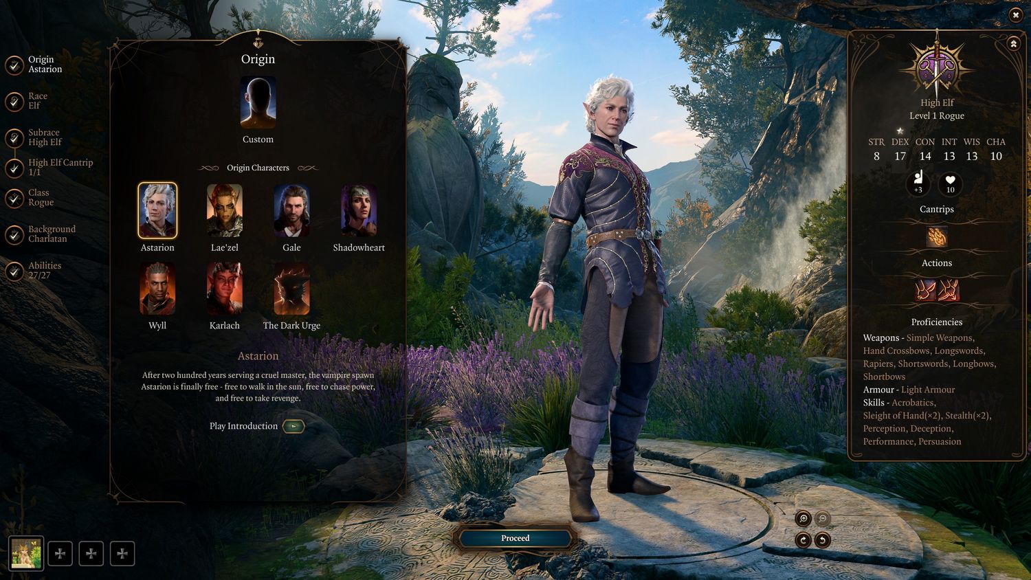 El engendro vampiro Astarion comienza como un Pícaro: una clase de personaje centrada en lo alto Destreza y ataques sigilosos. Los pícaros son una clase particularmente subestimada en Puerta de Baldur 3 debido a las muchas ventajas que ofrece el sigilo, y sus bonificaciones a las pruebas de habilidad basadas en Destreza son útiles durante todo el juego. Como tal, es mejor no respetar a Astarion lejos de Rogue.