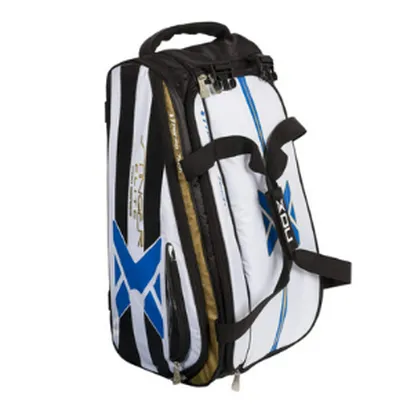 Funda protectora para transportar las palas de pádel con un estilo de mochila, fabricada con materiales robustos, resistentes y de calidad. Destaca por su gran cantidad de compartimentos para distribuir de manera organizada el material deportivo, como su bolsillo para las zapatillas o su espacio exterior para complementos más pequeños como el móvil, las llaves o la cartera.