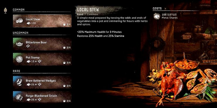 Aproveche los beneficios de los alimentos de Forbidden West sobre la elaboración rápida
