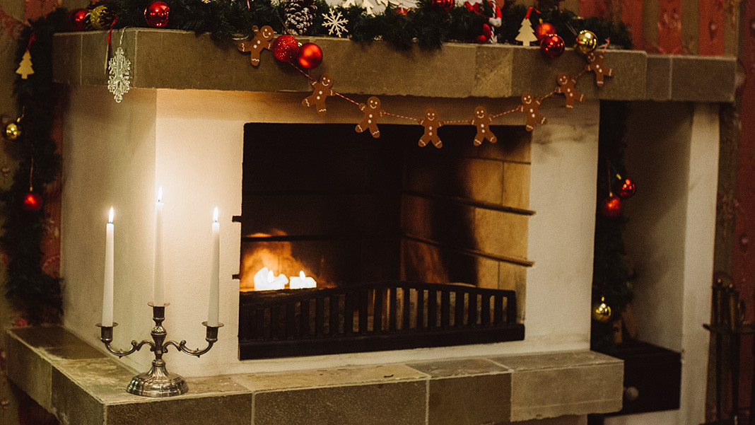 Nada dice “fiestas” como las reuniones acogedoras alrededor de la chimenea. Pero antes de encender una llama, asegúrate de que la salida para humo esté abierta y que no haya nada inflamable cerca. Nunca dejes un fuego desatendido. Como alternativa, olvídate del fuego por completo y en lugar de eso usa el espacio para una exhibición decorativa de velas y vegetación.