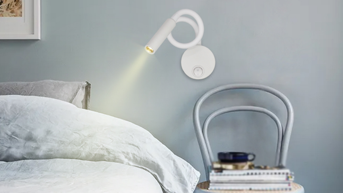 Una opción ideal para utilizar como lámpara de noche de lectura sin necesidad de utilizar una mesita de noche y ahorrando espacio, gracias a su estilo minimalista combinado con un interruptor de botón.