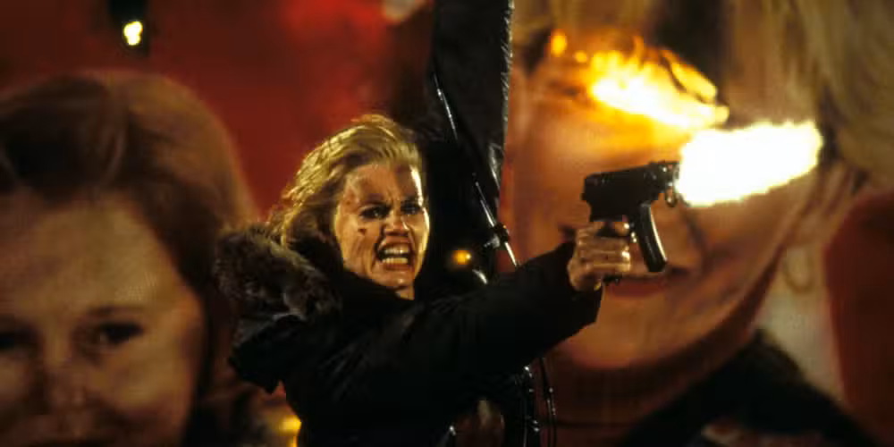 Otro éxito de taquilla con guión de Shane Black, donde la ama de casa amnésica de Geena Davis descubre que alguna vez fue una de las principales asesinas. Con la ayuda del detective privado de Samuel L. Jackson, ella se mantiene un paso por delante de los enemigos de su pasado. Posiblemente la entrada más subestimada de esta lista, El largo beso de buenas noches es felicidad de principio a fin.
