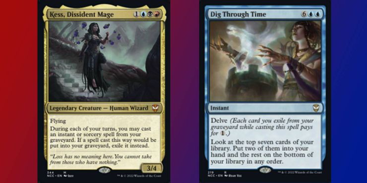 Rekindling Phoenix es una criatura barata que se puede sacrificar en cada turno, Double Vision proporciona copias adicionales de instantáneos y conjuros, y Zndrsplt’s Judgement es un conjuro de creación de fichas con un giro político. Cada una de estas tres cartas ha sido reimpresa por primera vez en magia‘s Calles de Nueva Capenna Cubiertas de comandante. Maestros Massacre también incluye poderosos hechizos de robo de cartas azules como Realidad o ficción y Cavar a través del tiempo, el último de los cuales es lo suficientemente poderoso como para ser prohibido en múltiples Magia: la reunión formatos competitivos.