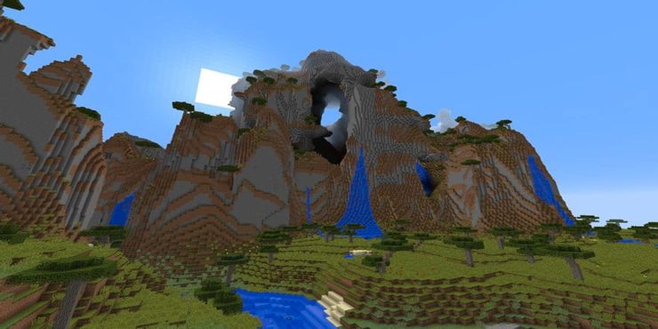 - Con la actualización 1.18 a Minecraft, los desarrolladores pusieron un fuerte énfasis en las montañas y las cuevas. Esta semilla permite a los jugadores experimentar de inmediato las nuevas criaturas, elementos y paisajes al generarlos junto a un sistema de cuevas profundo e intrincado con una pintoresca cadena montañosa cerca. Donde esta semilla carece de acceso a la aldea, lo compensa dando a los jugadores la oportunidad de ver todas las nuevas características de la actualización más reciente.
