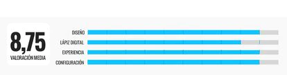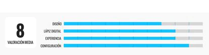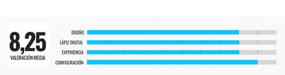 Los acabados que ofrece este modelo son muy buenos, se siente ligera y su grosor es muy fino. Con un área de impresión de 216 x 135 mm, viene con un lápiz digital que promete un uso cómodo y natural. No necesita ninguna batería para funcionar y presenta una sensibilidad a la presión de 4.096 niveles: aunque este valor es inferior al resto, no hemos visto que la experiencia de uso se viese comprometida.