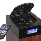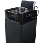 Como el resto, funciona conectado a la corriente eléctrica. Posee las siguientes conexiones: entrada auxiliar, ranura para tarjetas SD y puerto USB. También sintoniza emisoras de radio FM y se conecta a través de Bluetooth con teléfonos y tabletas.