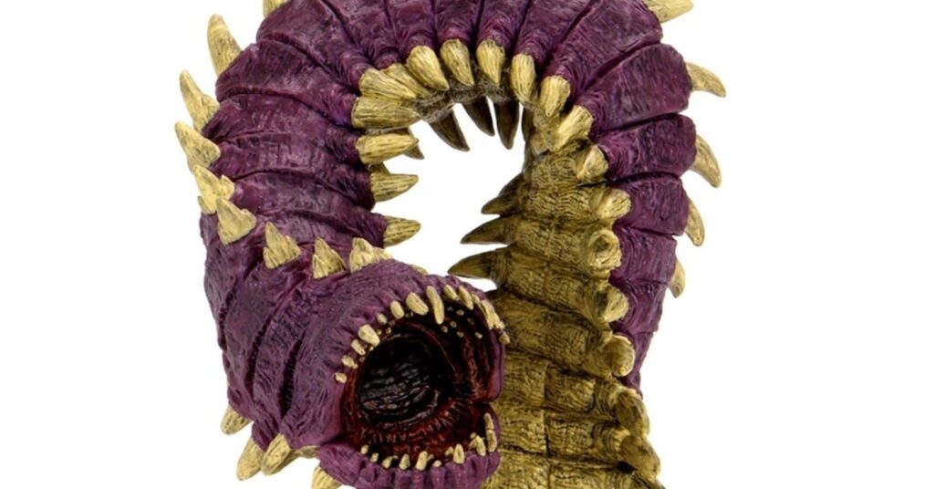 El gusano morado, uno de Calabozos y Dragones’ la mayoría de los monstruos icónicos, también se incluye en Fangs and Talons como una figura premium disponible para comprar por sí sola. WizKids hizo anteriormente un Purple Worm como parte de su caja “Classic Creatures” en 2017, pero este se ve mucho más visualmente impresionante y aterrador. Mientras que el gusano todavía se muestra emergiendo del suelo, su cabeza está mucho más abajo del suelo con la boca abierta mostrando filas de dientes. Los picos y la piel dura hacen que este monstruo parezca una amenaza real para los jugadores en lugar de un extraño vestigio de ediciones pasadas.