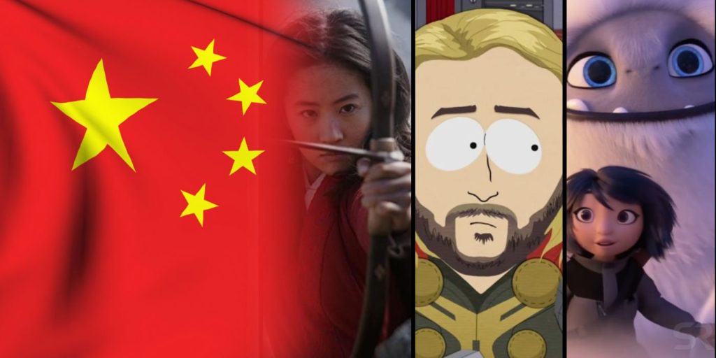 A principios de octubre, la serie animada para adultos de Comedy Central parque del Sur, un programa conocido por su humor crudo, transmitió el episodio "Band in China". El episodio contenía una historia que se burló de cómo los ejecutivos de Hollywood se esfuerzan tanto por mantenerse en las buenas gracias de China. Los personajes principales intentan escribir un guión para una película, pero un guardia chino sigue alterando su trabajo. Disney es otro objetivo de la parque del Sur episodio, como se muestra a Mickey Mouse tratando de asegurarse de que sus empleados cooperen con las autoridades chinas.