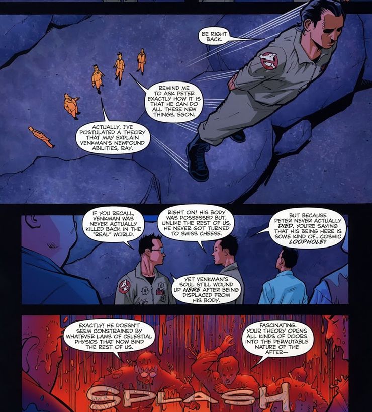Si la teoría de Egon es correcta, lo que rara vez no lo es, esto convertiría a Peter en algo parecido a un dios en el más allá, lo que recuerda su memorable encuentro con Gozer the Gozerian en 1984. Cazafantasmas. Aunque fue Ray cuya respuesta a la pregunta de Gozer casi los mata, es el estado de Peter como un Superman espiritual lo que le da una ventaja inusual. La amenaza de los Cazafantasmas a menudo se ha relacionado con su tecnología, que no tienen en esta situación, dejándolos indefensos contra las fuerzas de sus enemigos hasta que Peter regrese. Aunque el cuerpo físico de Peter todavía está ocupado, esta extraña complicación permite que el espíritu de Peter ejerza un poder que podría haber sido útil durante sus batallas con Gozer u otros como Vigo the Carpathian.