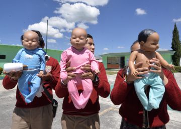 A Tepeyac algunas chicas llegan por iniciativa propia. Otras, las menores de edad sobre todo, las envía la Secretaría de Salud de Veracruz, cuenta Martínez. “El DIF [Sistema de Desarrollo Integral de la Familia] y los hospitales ya saben de nosotros, entonces las traen directamente”, explica rodeada de imágenes de la virgen y el papa Francisco. Allí pasan los meses de preñez encerradas, solo salen a consulta médica y a misa. Unos 40 días después de parir, el albergue las devuelve al sistema de salud público, que a su vez, las manda a casa.