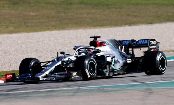 Hamilton, con su Mercedes W11 en los test de F1 2020