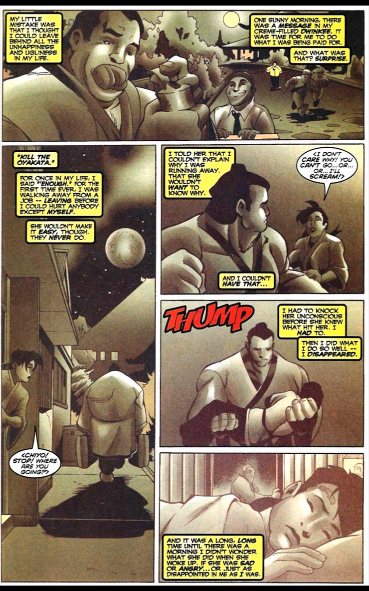 En Deadpool y Widdle Wade se unen #1, el mercenario bocazas es arrojado a una secuencia de flashback (con la pantalla de lámpara apropiada) en la que Wade Wilson recuerda su pasado como, entre todas las cosas, un luchador de sumo. Tiene la tarea de infiltrarse en todo el recinto y, como tal, se somete a un entrenamiento de sumo (que incluye muy poco además de aprender técnicas de lucha y alimentación), aprendiendo del propio Oyakata (su maestro). Asciende de rango, convirtiéndose finalmente en el heredero de todo el complejo y enamorándose de Sazae. Desafortunadamente, recibe órdenes angustiosas: debe asesinar a su amo el Oyakata.
