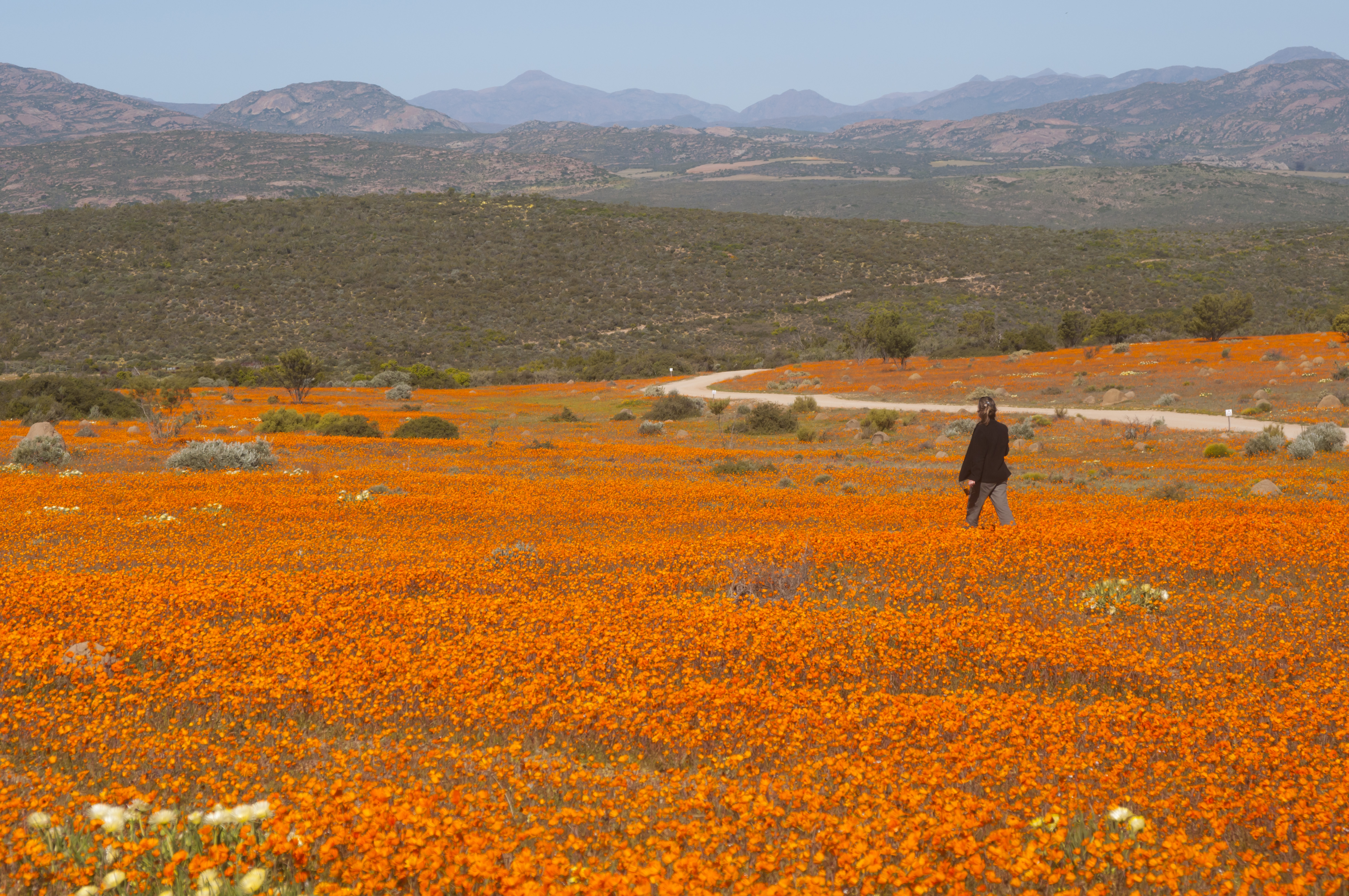 Las margaritas de Namaqualand (Dimorphotheca sinuata) son endémicas en las provincias de Cabo del Norte y Cabo Occidental, y han evolucionado para sobrevivir a las duras y áridas condiciones climáticas. A principios de primavera, el cambio de temperatura y precipitaciones las hace florecer, en un ejemplo de lo que se denomina fenómeno fenológico.