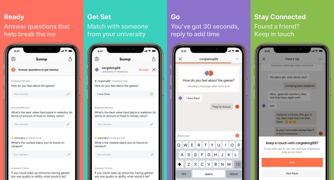 La otra aplicación nueva de NPE Team es Bump, que tiene como objetivo ayudar a las personas a "hacer nuevos amigos".