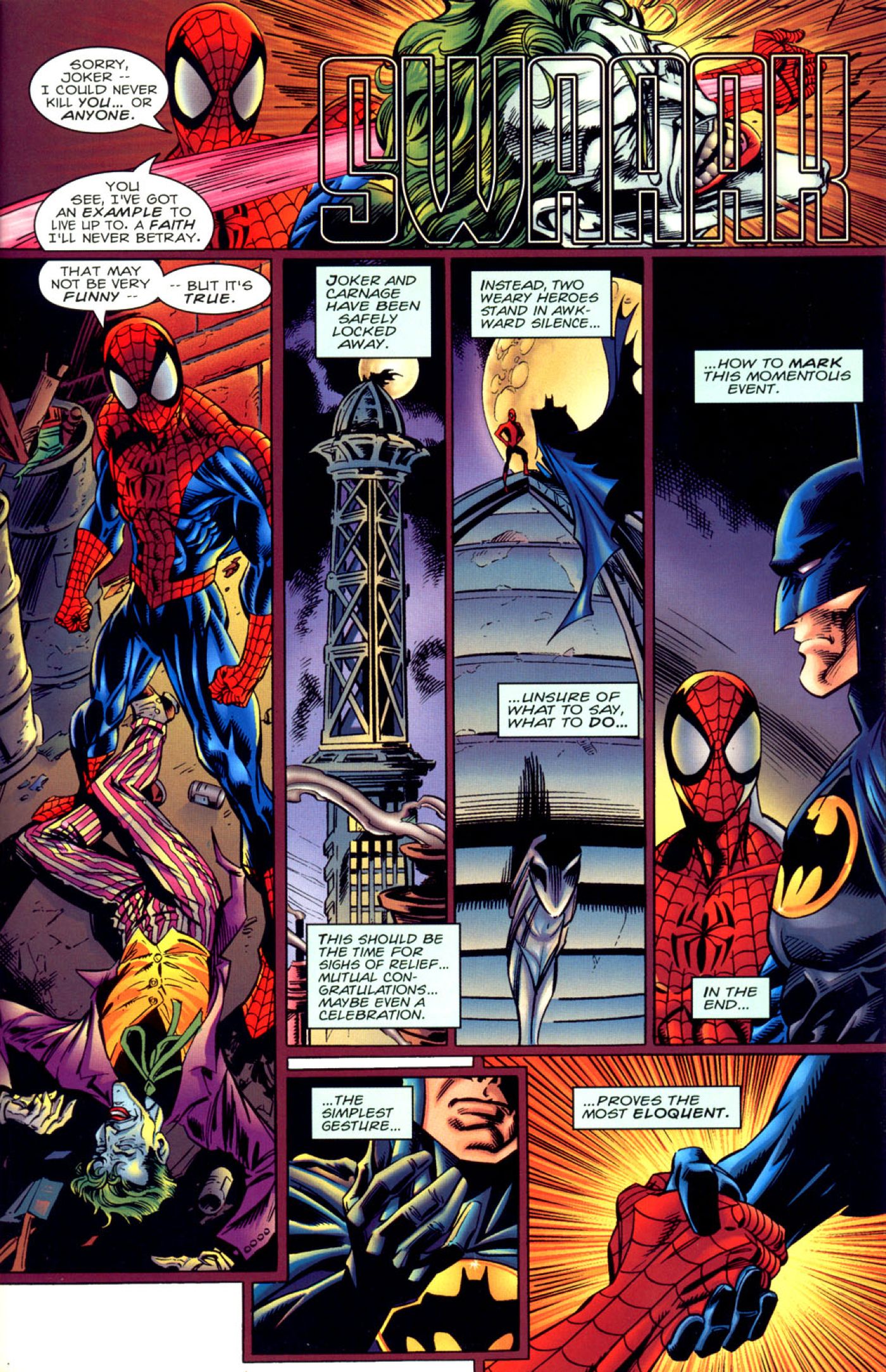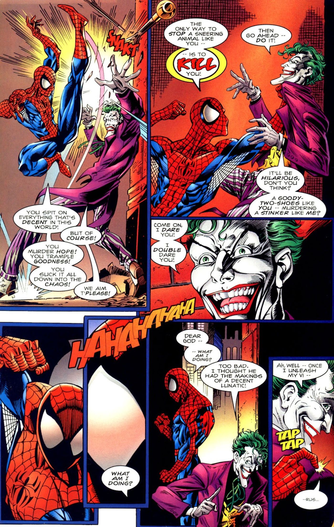 - El encuentro de Spider-Man con el Joker en el crossover de los años 90 Spider-Man y Batman revela sus emociones más oscuras, pero mantiene el control y resiste el impulso de venganza.