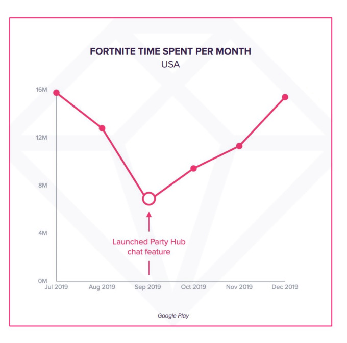 Fortnite, como un ejemplo clave de esta tendencia, lanzó Party Hub en función de su tecnología Houseparty adquirida, en septiembre de 2019. En los tres meses posteriores al lanzamiento, el tiempo que pasó en Fortnite creció un 130%.