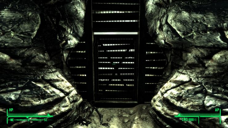 Cuando el jugador ve esta puerta destartalada en Fallout 3, acaban de salir del Refugio 101 a través de una puerta tecnológicamente más impresionante que sella la entrada del Refugio. Esta simple puerta, sin embargo, es la salida literal y figurativa del personaje del jugador de la cueva. A pesar de las órdenes del Supervisor, el Trotamundos Solitario escapa a la introducción de Bethesda. Fallout 3 entorno, una bóveda en la que han estado confinados toda su vida, para superar esta barrera final y revelar el paisaje desolado donde realmente comenzará su aventura.