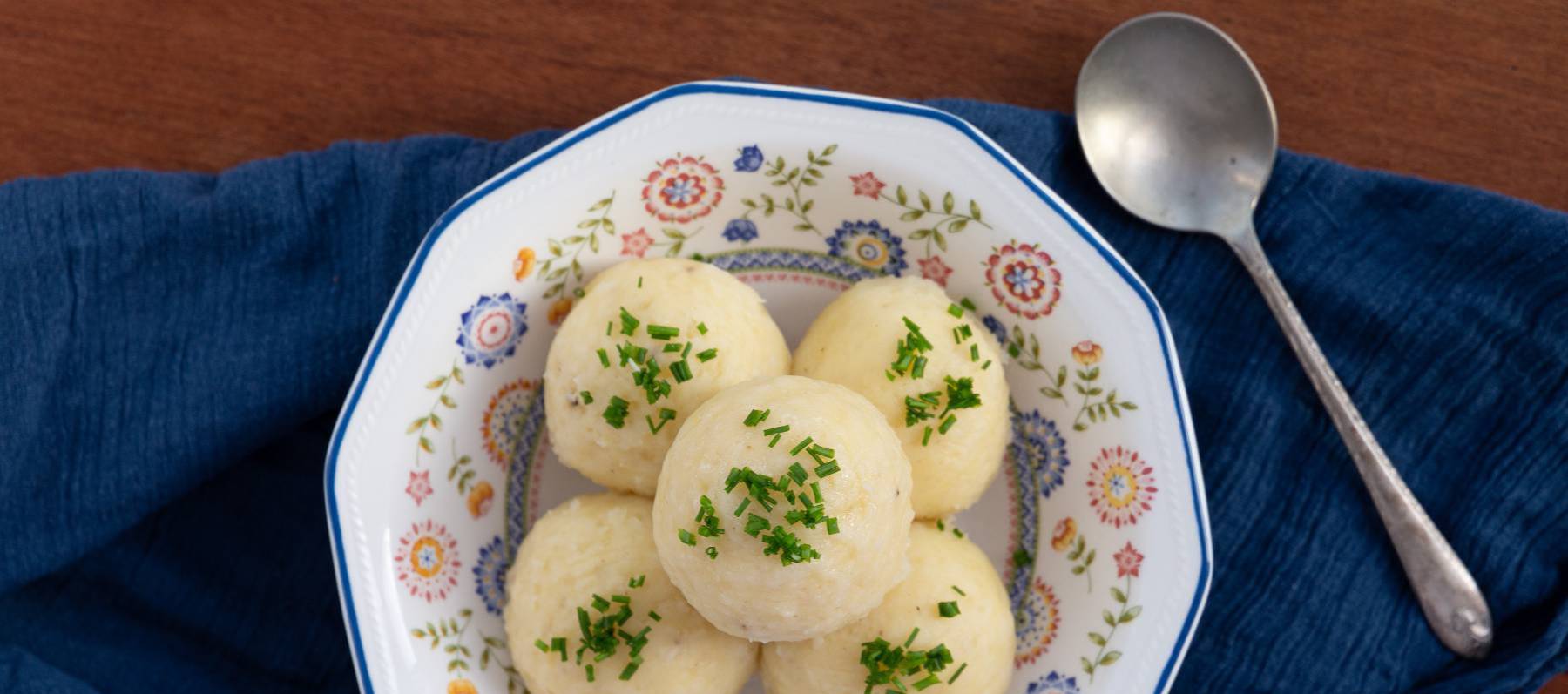 Hice los knodel con el miedo a que se me desintegraran en el cuerpo, pero el resultado fue muy bueno. Que el hervor sea suave de verdad es importantísimo: en distintas tandas de hervido probé con más o menos intensidad y hay una clara diferencia. La receta es válida y no le cambiaría ni una coma. ¿Qué creo que pudo pasar? Que las patatas fueran nuevas, que el hervor no fuera tan suave como Balana pensaba o que la margarina y la harina de maíz –que no se debe confundir con harina fina de maíz, almidón de maíz o Maizena– no fueran ingredientes adecuados para conseguir unas albóndigas de patata que resistan el hervido.