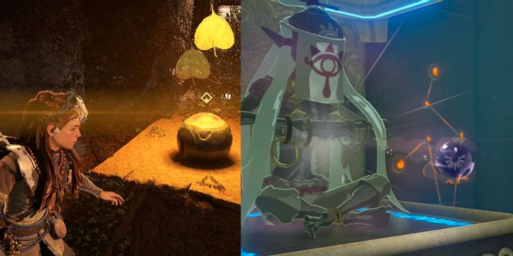 Las ruinas en Horizonte Prohibido Oeste comparten algunas similitudes interesantes con los Santuarios en La Leyenda de Zelda: Aliento de lo Salvaje. En cada juego, estas áreas de desafío ofrecen acertijos que varían en dificultad y se pueden completar recolectando un Ornamento en Horizonte Prohibido Oeste o un Spirit Orb en Zelda: Aliento de lo salvaje. Hay muchas diferencias entre estos desafíos, como el hecho de que solo hay nueve Ruinas en comparación con los 120 Santuarios, pero muchos de los rompecabezas comparten los mismos conceptos básicos.