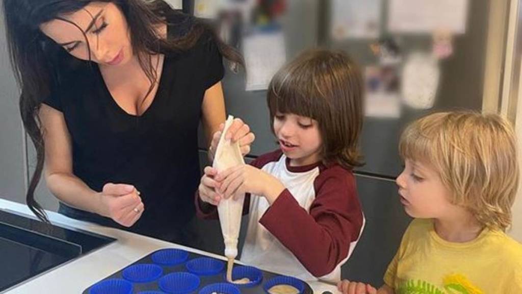 Está hecha una madraza, porque con sus tres niños y otro de camino hace lo imposible para que nadie se aburra en casa. Que si toca hacer deporte, pintamos un poco, jugamos todos juntos, teñimos camisetas… está imparable y hasta le sobra tiempo para cocinar.
