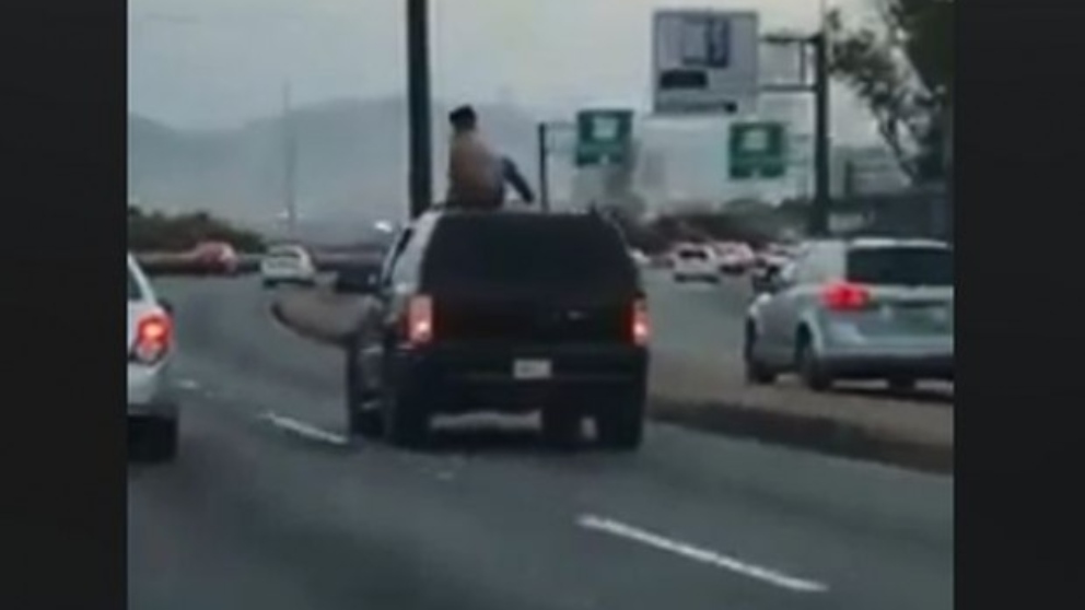 En este vídeo en plena hora punta en una autopista está siendo viral. En él podemos ver a un joven que ha decidido emprender una acción que puede costarle la vida. Como broma pesada o apuesta va subido al techo del vehículo sin ninguna sujeción. Solo se aguanta con sus propias manos que son las encargadas de impedir que se caiga a una abarrotada autopista.