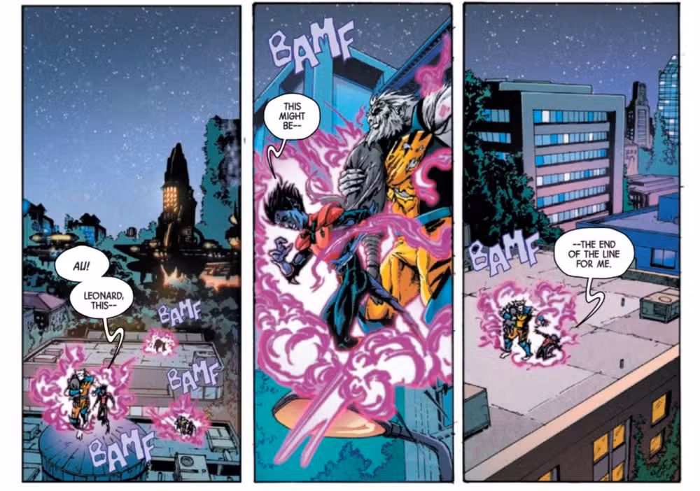 En El último Lobezno #3 – de Saladin Ahmed, Edgar Salazar, Carlos López y Cory Petit – Nightcrawler se sacrifica para salvar a Wolverine y su protegido Wendigo, Leonard. Cuando el grupo es atacado por los ejecutores de Revelation, Nightcrawler se esfuerza como nunca antes, obligando a su cuerpo a teletransportarse a pesar de que ya ha superado sus límites.